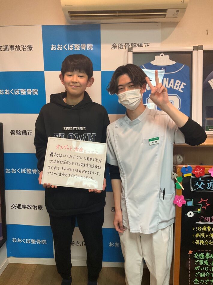当院でのオスグット治療は計2回で終了となりましたが、今後もセルフケアを継続しながら、大好きなバスケットボールを全力で頑張ってほしいと願っております。
