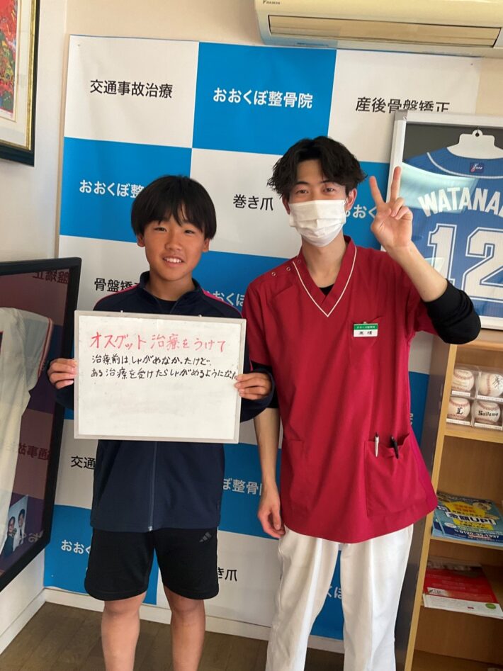 約1ヶ月前からオスグットの痛みがあって、家族の紹介で当院を受診しました。