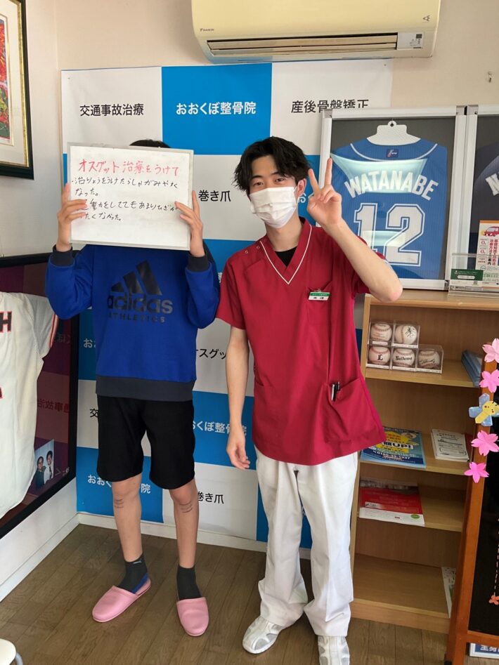 その後、他院でオスグットの治療を受けていましたが、オスグットの痛みが改善しなかったため、友人の紹介で当院を受診しました。